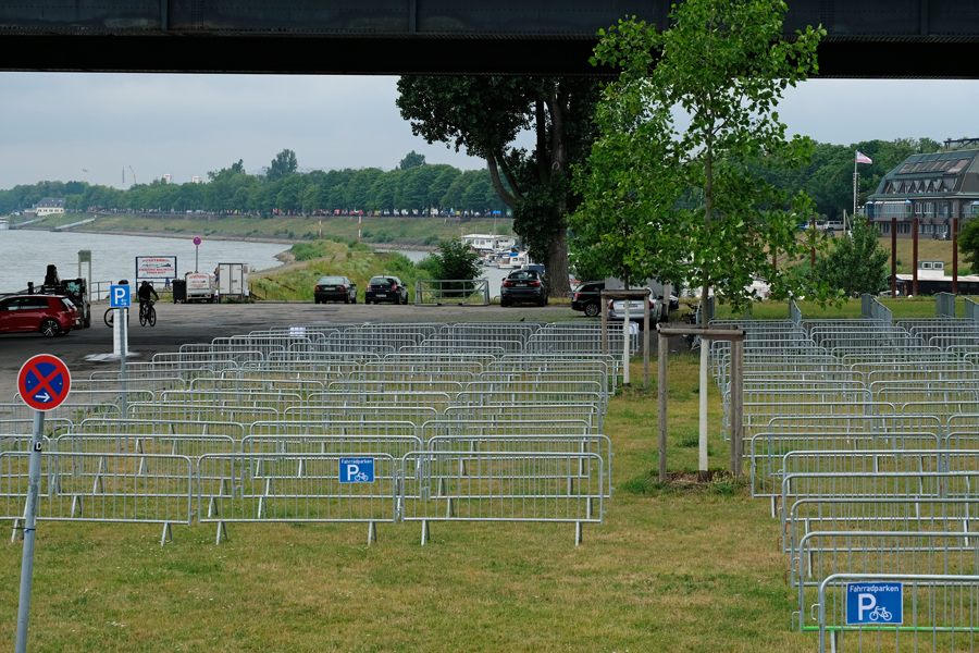 Für mich hatte das Szenario etwas von Christos Verhüllungskunst. Temporär wurde die größte Radsportveranstaltung der Welt mit leeren Fahrradständern umhüllt. Was wollten uns die Künstler damit sagen? Ohne jede Häme: Ich fand’s wirklich schön. Und deshalb habe ich meine Fotogalerie um vier weitere Eindrücke ergänzt. Das letzte Foto macht jedoch etwas deutlich: An Bratwürsten hat es offenbar gemangelt.